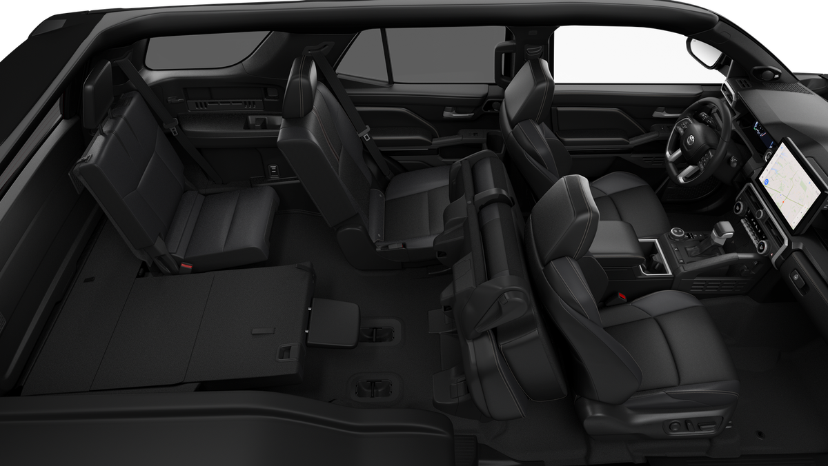 - 60/40 split, reclining and tumble-folding second-row seat with center armrest and cup holders