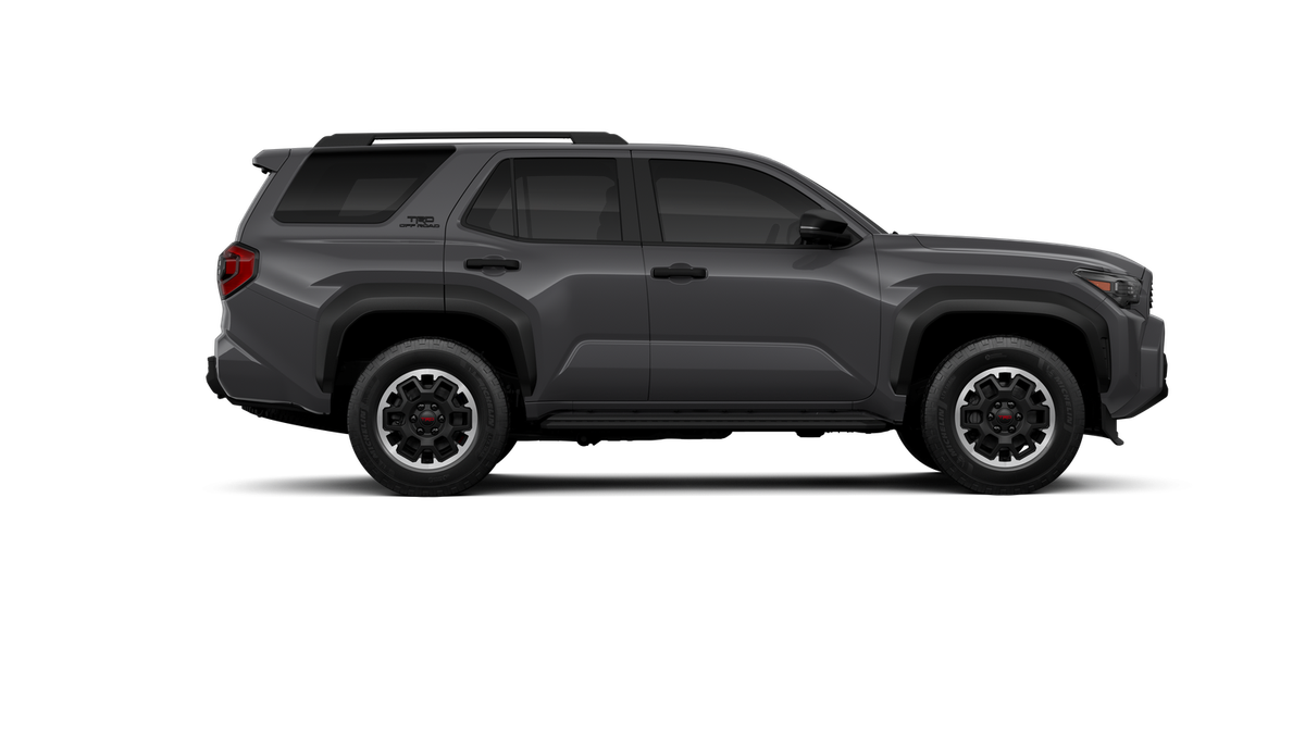- Black honeycomb-style grille, mirror caps, door handles and overfenders; color-keyed rear spoiler; black "TRD OFF ROAD" and "4RUNNER" badges