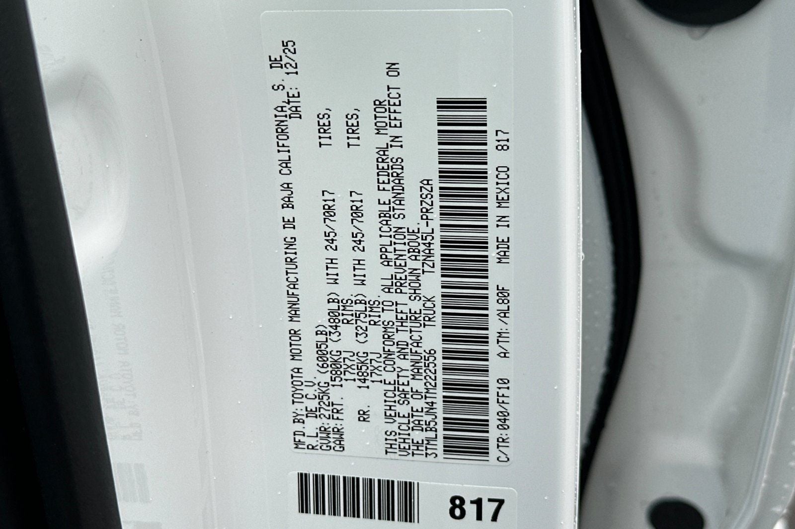 - Front Tire Size: P245/70TR17
