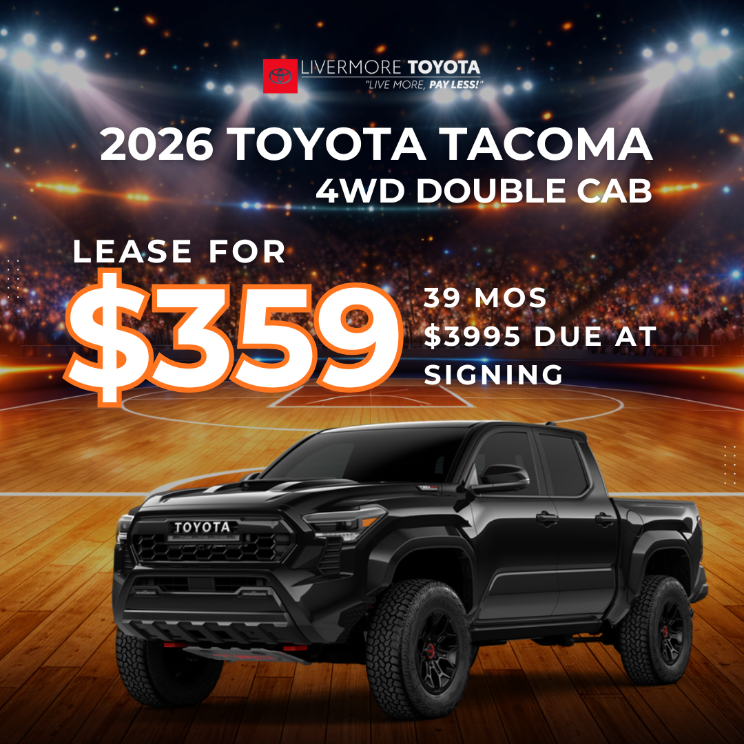DISCLAIMER == Lease based on New 2026 Toyota Tacoma 4wd Double Cab Sport Model 7542 MSRP of $45,584 - $3,995 due at lease signing including $359 first monthly payment, $2814 capitalized cost reduction, $395 acquisition fee, plus taxes, titles, license and documentary service fees. Noecurity deposit required. Option to purchase at lease end $38,985. Lessee is responsible for $.25 per mile over 10,000 miles/year, excess wear, and a $350 termination fee. Offer Expires 03/31/2026.