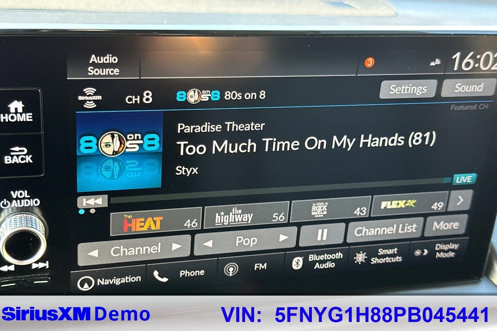 - Radio: Bose Premium Sound System -inc: 12 speakers w/subwoofer, 9" color touchscreen, Bluetooth® HandsFreeLink and streaming audio, Radio Data System (RDS), Speed-sensitive Volume Compensation (SVC), front 12-volt power outlet, wireless Apple CarPlay and Android Auto compatibility, Wi-Fi hotspot capability, Qi wireless phone charger, SMS text message function, SiriusXM (SiriusXM requires a subscription after any trial period, If you decide to continue your SiriusXM service at the end of your trial subscription, the plan you choose will automatically renew and bill at then-current rates until you call SiriusXM at 1-866-635-2349 to cancel, See our customer agreement for complete terms at www.siriusxm.com, Fees and programming subject to change, Available in the 48 contiguous United States and D.C, SiriusXM and all related marks and logos are trademarks of SiriusXM Radio Inc.), HD Radio, 2.5-amp USB type-A smartphone/audio interface port in front console, 3.0-amp USB type-C charging port in front console, Honda Satellite-Linked Navigation System w/voice recognition and Honda Real-Time Traffic (The Honda Satellite-Linked Navigation System functions in the United States (not including territories, except Puerto Rico) and Canada, Honda HD Digital Traffic service is only available in the United States, except Alaska, Please see your Honda dealer for details.), HondaLink subscription services ( complimentary trials of security for 1 year and a remote/concierge trial for 3 months, Enrollment is required to access the remote/concierge trial and to access certain features of security, At the end of each trial period, purchase of a subscription is required to continue the respective services.), multi-zone audio and CabinTalk in-car PA system