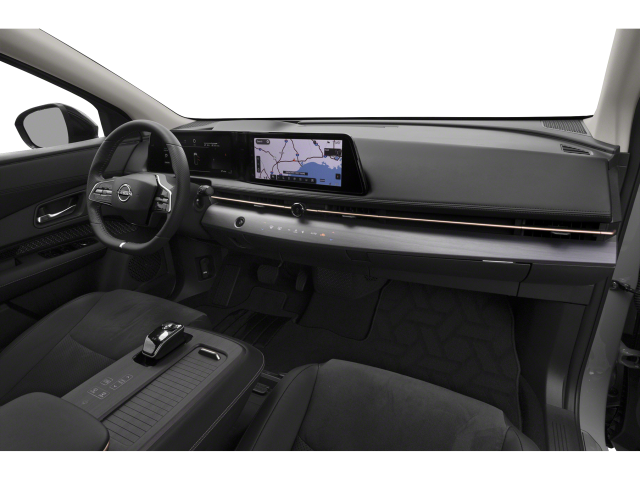 ONE OWNER, Navigation / NAV / GPS, Back Up Camera, Bluetooth®, Alloy Wheels, Aluminum Wheels, Audio Package, Climate Package, Heat Package, Moonroof, Navigation System, Power Mirror Package, Ariya EMPOWER+, 4D Sport Utility, Electric Motor, CVT, FWD, Northern Lights Metallic, Charcoal Artificial Leather, 11.090 Final Drive Ratio, 19 Alloy Wheels, 4-Wheel Disc Brakes, 6 Speakers, ABS brakes, Air Conditioning, Alloy wheels, AM/FM radio: SiriusXM, Auto High-beam Headlights, Automatic temperature control, Brake assist, Bumpers: body-color, Carpeted Floor Mats & First Aid Kit, Delay-off headlights, Driver door bin, Driver vanity mirror, Dual front impact airbags, Dual front side impact airbags, Electronic Stability Control, Emergency communication system: NissanConnect EV & Services, Exterior Ground Lighting, Four wheel independent suspension, Front anti-roll bar, Front Bucket Seats, Front Center Armrest, Front dual zone A/C, Front fog lights, Front reading lights, Garage door transmitter: HomeLink, Heads-Up Display, Heated door mirrors, Heated Front Bucket Seats, Heated front seats, Heated rear seats, Heated steering wheel, Illuminated entry, Illuminated Kick Plates, Knee airbag, Leather steering wheel, Leatherette Seating Surfaces, Low tire pressure warning, Memory seat, Navigation system: Nissan Door to Door Connected Navigation, Occupant sensing airbag, Outside temperature display, Overhead airbag, Panic alarm, Passenger door bin, Passenger vanity mirror, Power door mirrors, Power driver seat, Power Liftgate, Power moonroof, Power passenger seat, Power steering, Power windows, Radio: AM/FM Audio System, Rain sensing wipers, Rear anti-roll bar, Rear reading lights, Rear seat center armrest, Rear side impact airbag, Rear window defroster, Rear window wiper, Remote keyless entry, Security system, Speed control, Speed-sensing steering, Speed-Sensitive Wipers, Split folding rear seat, Spoiler, Steering wheel mounted audio controls, Tel